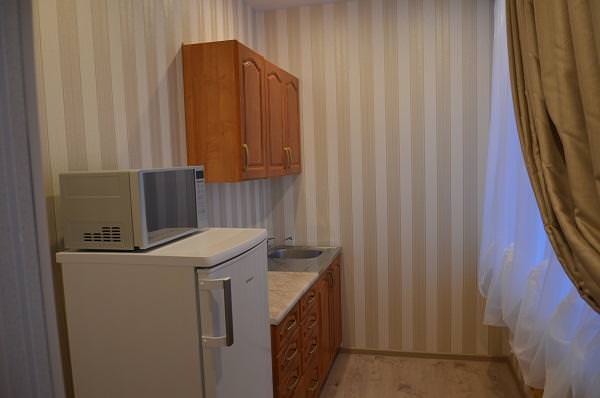 2 комнатный номер, в номере кухня, холодильник, ТВ, посуда, чайник, фен, халат, душевая кабина, мягкая мебель, двуспальная кровать и полутороспальная кровать